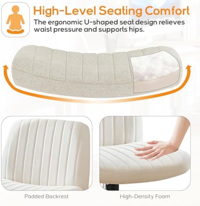 DUMOS Criss Cross Chair Legged Office Wide Comfy Desk Seat, No Wheels Armless Computer Task Seating, Swivel Vanity Home Height Adjustable