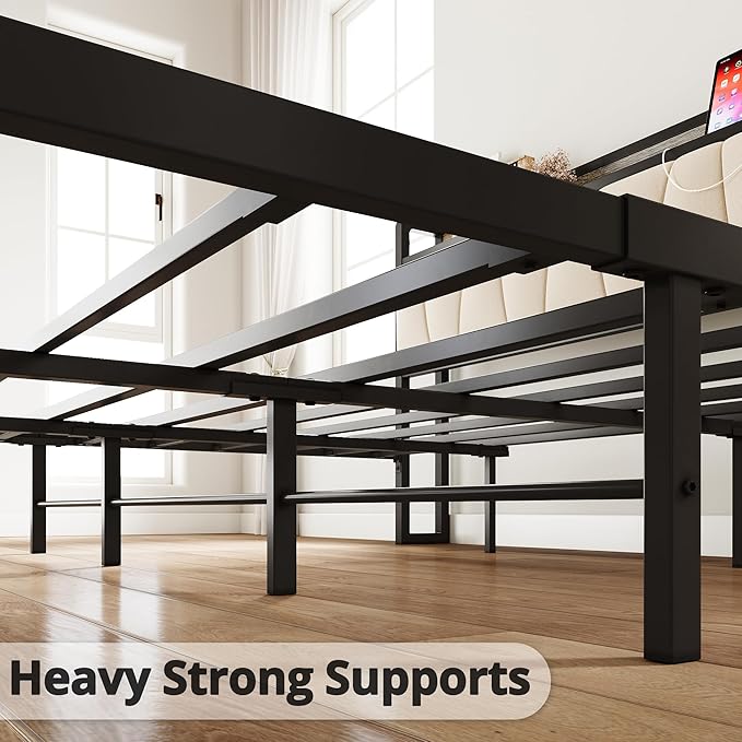 - Sturdy metal slats reinforce the platform king bed's structure, ensuring robustness and durability. Providing optimum support for all types of mattresses without the use of a box spring
