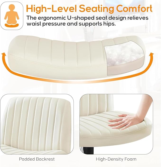 DUMOS Criss Cross Chair Legged Office Wide Comfy Desk Seat, No Wheels Armless Computer Task Seating, Swivel Vanity Home Height Adjustable