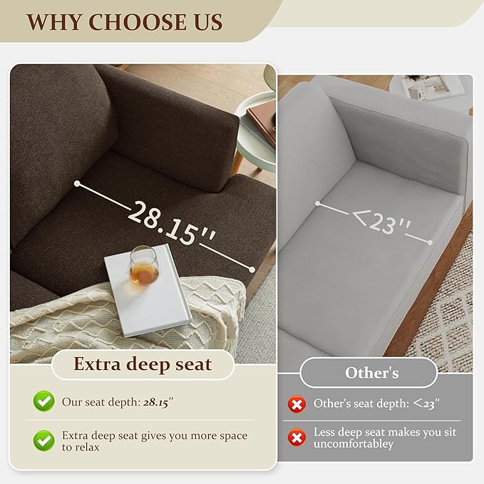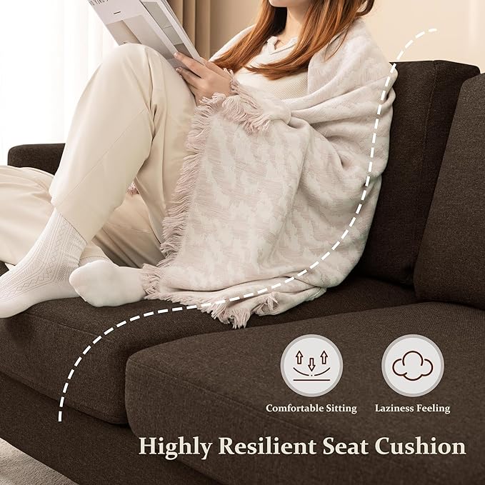 Loveseat Sofa with Deep Seats Mid Century Upholstered 2 Seat Small Sofa, Brown