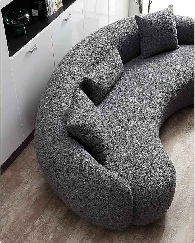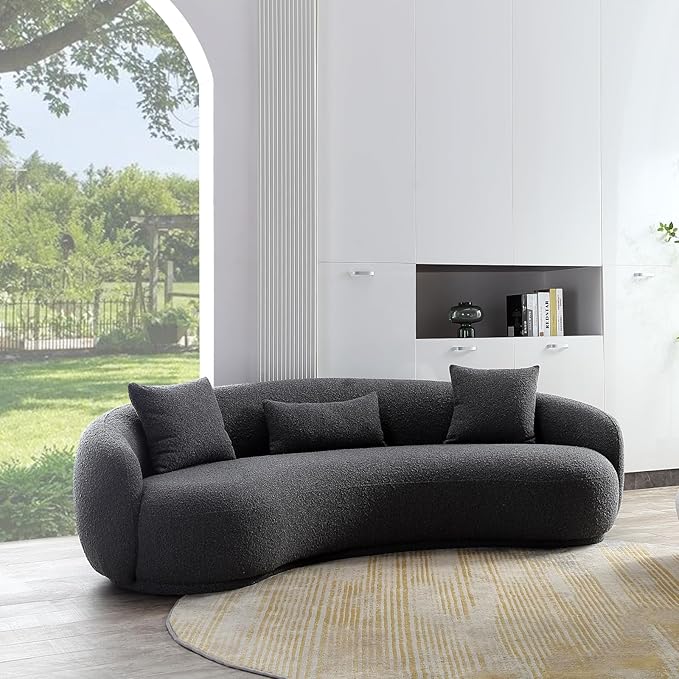 - High-quality boucle fabric sofa - This curved couch sofa's skin-friendly boucle fabric and solid wood frame set a new comfort standard. Experience unparalleled relaxation every time you sit or lie down.