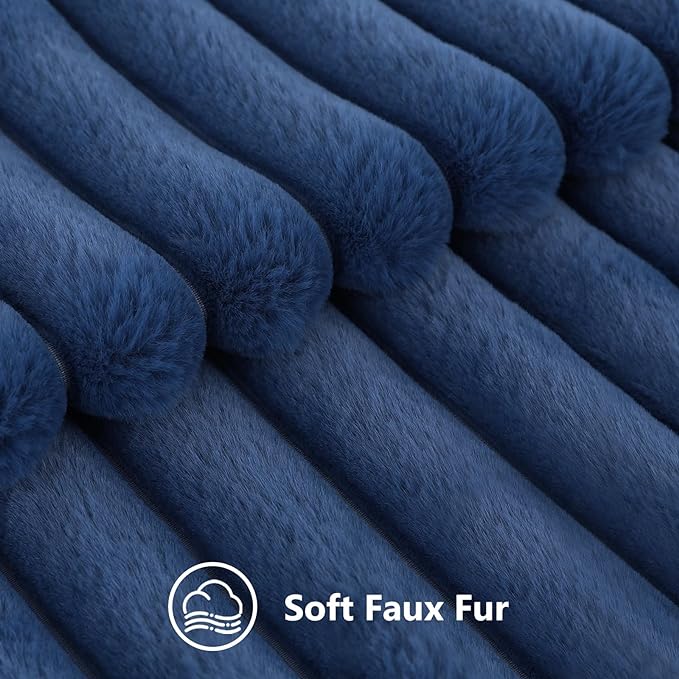 decorUhome Faux Fur Throw Pillow Covers 18x18 Set of 2, Decorative Soft Plush Striped Neutral Euro Pillow Covers with Velvet Back for Bed, Living Room Home Decor, Blue