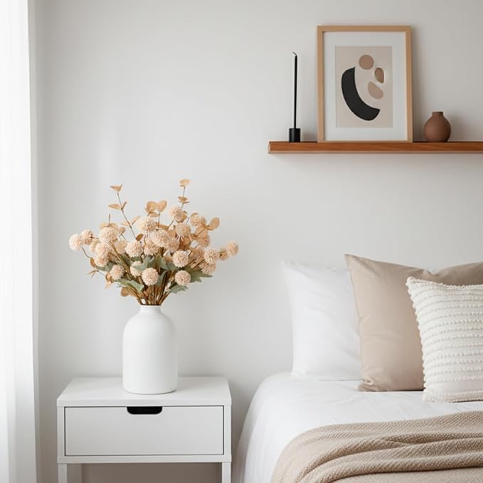 - Small Beig Flowers - The artificial flower arrangement is a convincing counterpart to fresh flowers tailored to enhance dining tables coffee tables entryway or any space that needs a breath of life. The added silk flower stems act as an authentic filler elevating the bouquet's overall aesthetic.