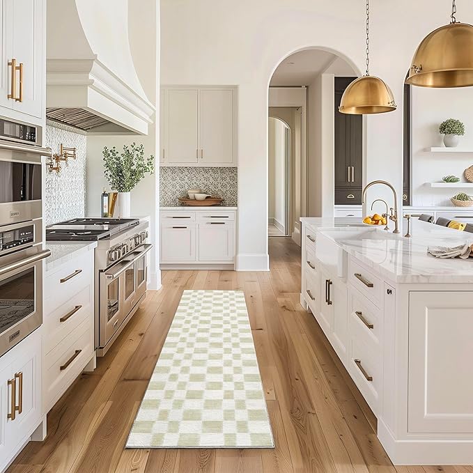 EVERGRACE Checkered Plaid Area Rug, Soft Fuzzy Faux Wool, 2x8, Washable Anti Slip Long Runner Carpet for Entryway, Bedroom, Living Room, Hallway, Kitchen, Dining Room and Laundry, Beige