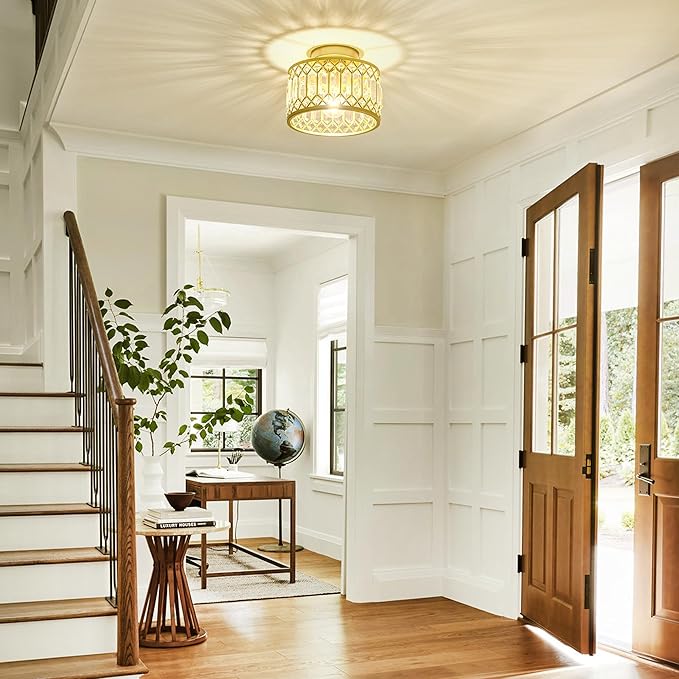 - 【Wide Application】The diameter of this crystal chandelier is 9.05 inch,the base diameter is 4.72 inch,Height is 7.08 inch.These Hallway light fixture ceiling are in small size that won’t take much space, which will also be an ideal choice for space with lower ceiling and can be put in any place as you want such as living room, dining room, hallway, foyer, kitchen, bedroom, entryway, porch etc. This Kitchen Light Fixture ceiling Mount will also be a great gift for family and friends in various occasions such as house warming.