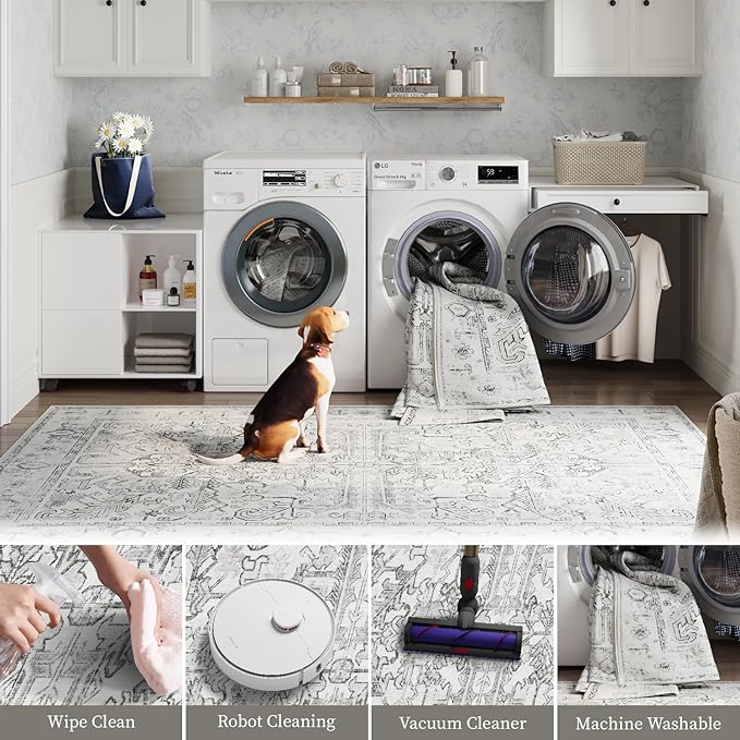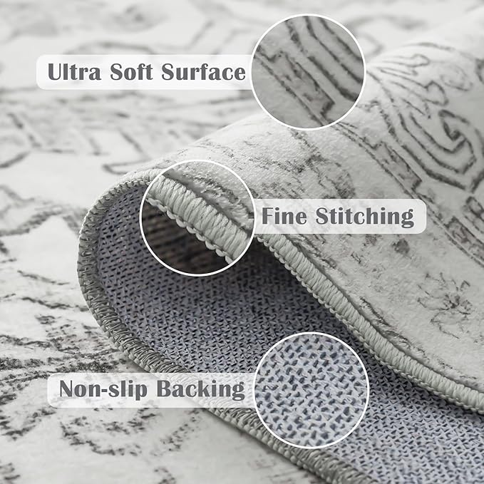 jinchan Washable Entry Rug 2x3 Vintage Floral Non-Slip, Grey