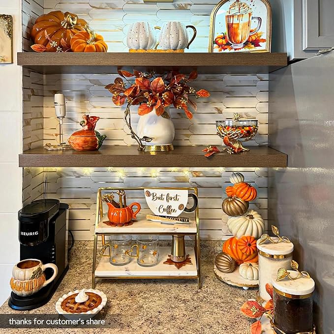 Vamos Tile Peel and Stick Backsplash Seamless Tile,10 Sheets Stick on Backsplash for Kitchen & Bathroom, Calacatta Gold+Matt Pure White Marble Look PVC+ Light Gold Self Adhesive Backsplash Tile
