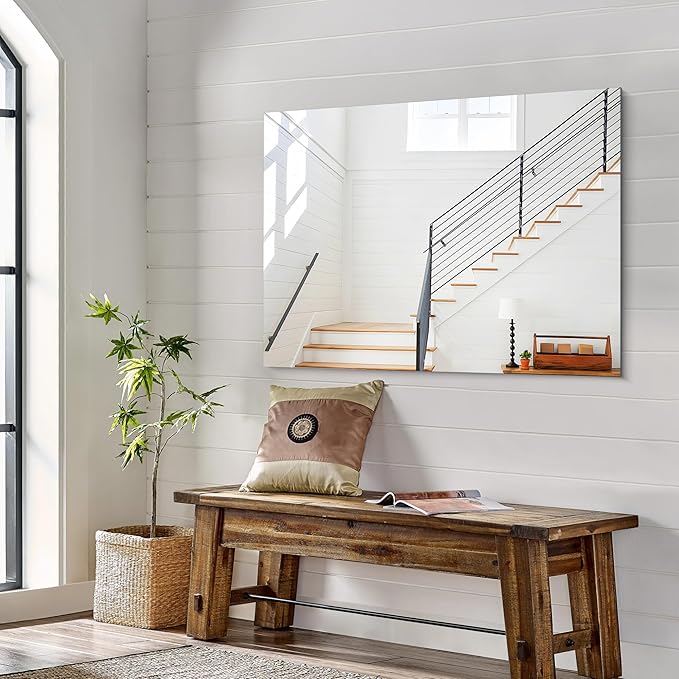 - EASY TO INSTALL AND SAFE PACKAGING : The packaging of this mirror without frame is well-designed and safe, with all-round protective Styrofoam and has passed the drop test. Don't worry about breakage. All of KOCUUY's rectangle mirrors can be hung horizontally or vertically. Super easy to install. Installation guide and screw bag are included in the package