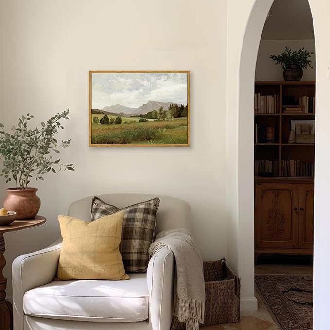 - 【Framed Wall Art Canvas Prints】This antique country landscape painting will bring a soothing effect to any room of your home with its calming colors. This country oil painting is perfect for farmhouse style spaces, with a bold elegance that makes it an iconic centerpiece for you. The framed vintage landscape wall art decor is ideal for farmhouse decoration, this artwork adds a rustic touch to your bathroom, bedroom, and living room, creating a serene and cozy atmosphere.