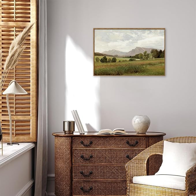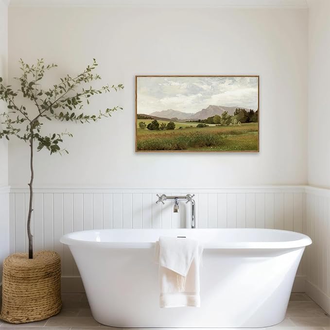 - 【Framed Wall Art Canvas Prints】This antique country landscape painting will bring a soothing effect to any room of your home with its calming colors. This country oil painting is perfect for farmhouse style spaces, with a bold elegance that makes it an iconic centerpiece for you. The framed vintage landscape wall art decor is ideal for farmhouse decoration, this artwork adds a rustic touch to your bathroom, bedroom, and living room, creating a serene and cozy atmosphere.