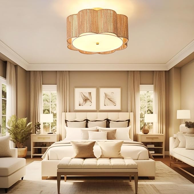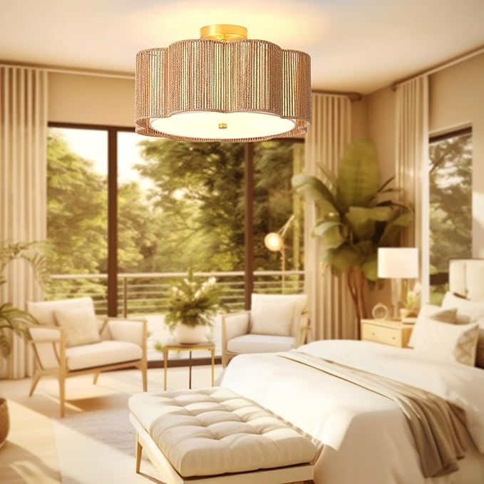 - 【Idea Lighting Decoration & Widely Application】 Rattan ceiling light for bedroom will bring you a wonderful ambiance to your space. Ideal for kitchens, farmhouse dining rooms, hallways, bedrooms, entrances, corridors, lobbies, libraries, reading rooms and more. Bohemian light fixture ceiling also is a wonderful and practical present for family and friends.
