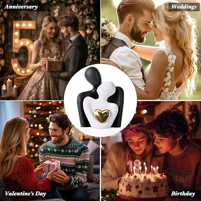 - Couples Bedroom Decor: This ceramic 'Hugging Couple Statue' embodies love and intimacy as the couple figurine shares a gaze, with a shining gold heart at the center, symbolizing a bright and precious bond. It's a mini yet impactful piece that brings a symbolic sparkle to any room, from the living room to the love office decor.