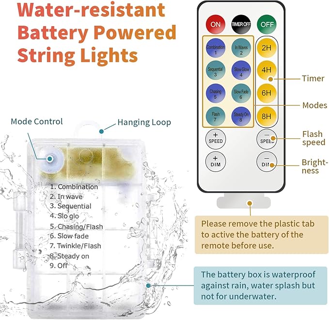 - Handy Remote & Timer: The handy remote control allows you to adjust the brightness, choose lighting modes, and set a timer to automatically turn off the autumn lights. It offers 8 lighting modes including static and twinkle and add a touch of seasonal charm to your autumn decorations