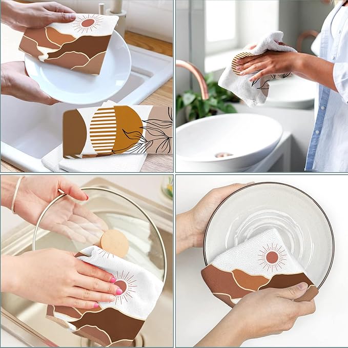 - Soft Material-- The bohemian decorative kitchen towels are made of high-quality and durable microfiber, which can be machine-washed and dried. It is super soft and will not scratch your delicate bowls, plates, pots or pots and other tableware.