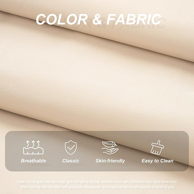 Hobestluk Giant Bean Bag Chair Lazy Floor Sofa, Fireside Sofa for Adults, Big Beanbag Faux Leather Armless Chair for Living Room Bedroom Dorm Office (Beige, Single)