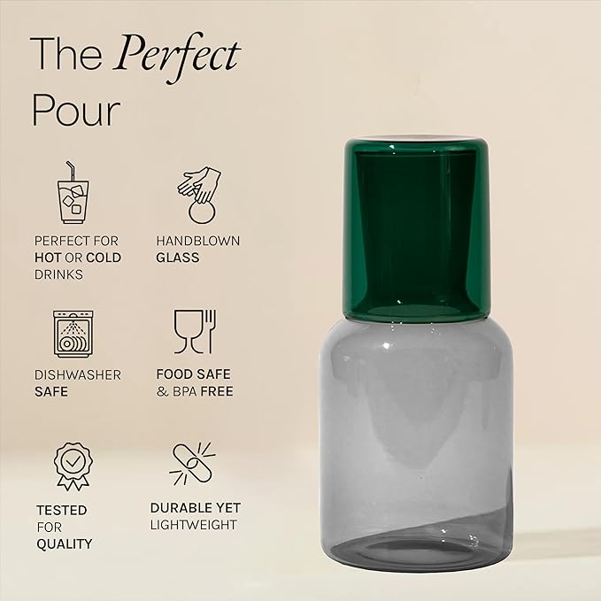 Glass Carafe and Cup Set | BPA Free, Dishwasher Safe, Durable & Lightweight | Ideal for Cold & Hot Beverages - Charcoal Gray & Pine