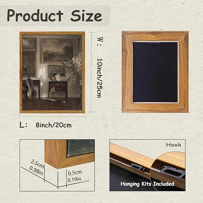 - 【Ready To Hang】Measuring 8x10Inch(20x25cm), this framed canvas art wall decor arrives ready to hang on the wall with hanging kits. (Before nailing the hook onto your wall, please refer to the installation instruction image provided. ) This vintage art piece will bring a soothing effect to any room of your home with its calming colors. This antique print is perfect for farmhouse style spaces, with a bold elegance that makes it an iconic centerpiece for you.