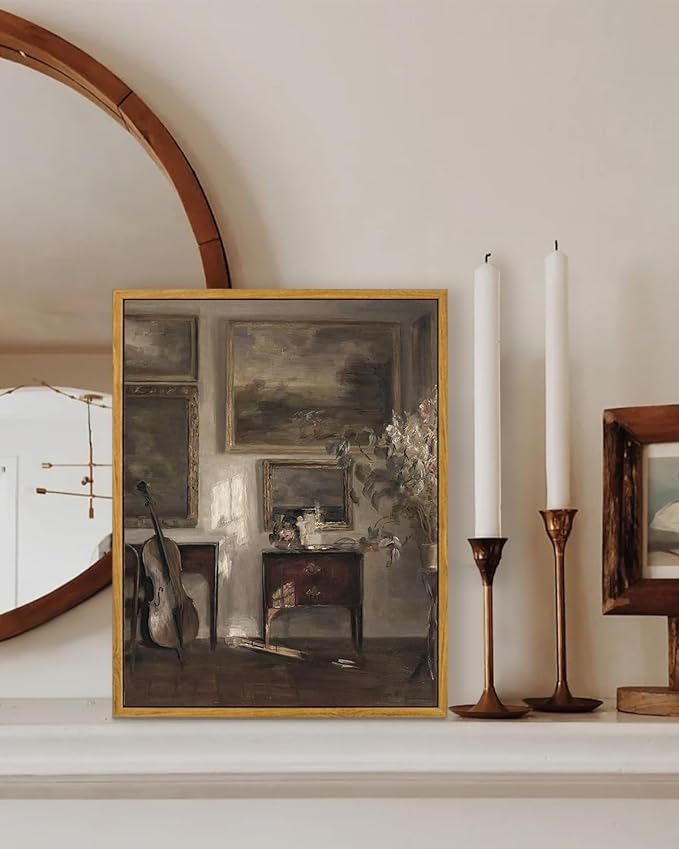 KBKBART Vintage Framed Wall Art , Farmhouse Decor Moody Still Life Canvas Oil Painting Vintage Dark Bathroom Art Prints, Neutral Antique Art Wall Decor for Bedroom, Living Room, Gallery, Gifts for Friends or Family (12"x16")