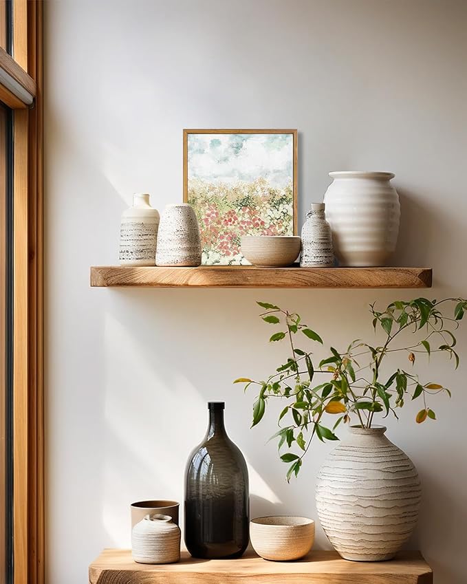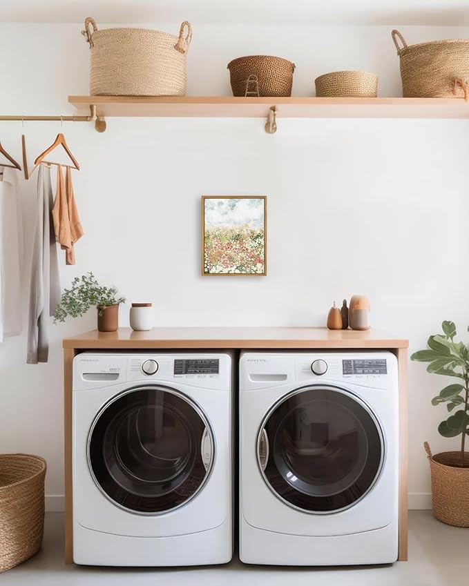 - 【Framed Wall Art - Spring Flower Field】Featuring beautiful wildflower fields and wilderness, the farmhouse decor wall art captures the beauty and tranquility of nature, bringing a sense of wonder into your living space. The framed vintage landscape wall art decor is ideal for farmhouse decoration, this artwork adds a rustic touch to your bathroom, bedroom, and living room, creating a serene and cozy atmosphere.