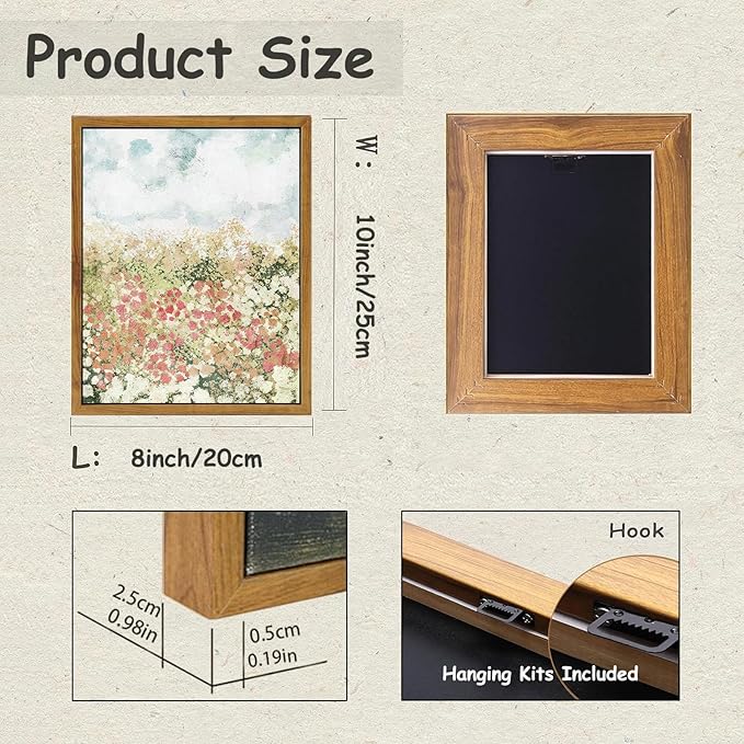 - 【Ready To Hang】Measuring 8x10Inch(20x25cm), this framed canvas art wall decor arrives ready to hang on the wall with hanging kits. (Before nailing the hook onto your wall, please refer to the installation instruction image provided. ) This vintage wildflowers meadow landscape art piece will bring a soothing effect to any room of your home with its calming colors. This antique landscape print is perfect for farmhouse style spaces with a bold elegance that makes it an iconic centerpiece for you.