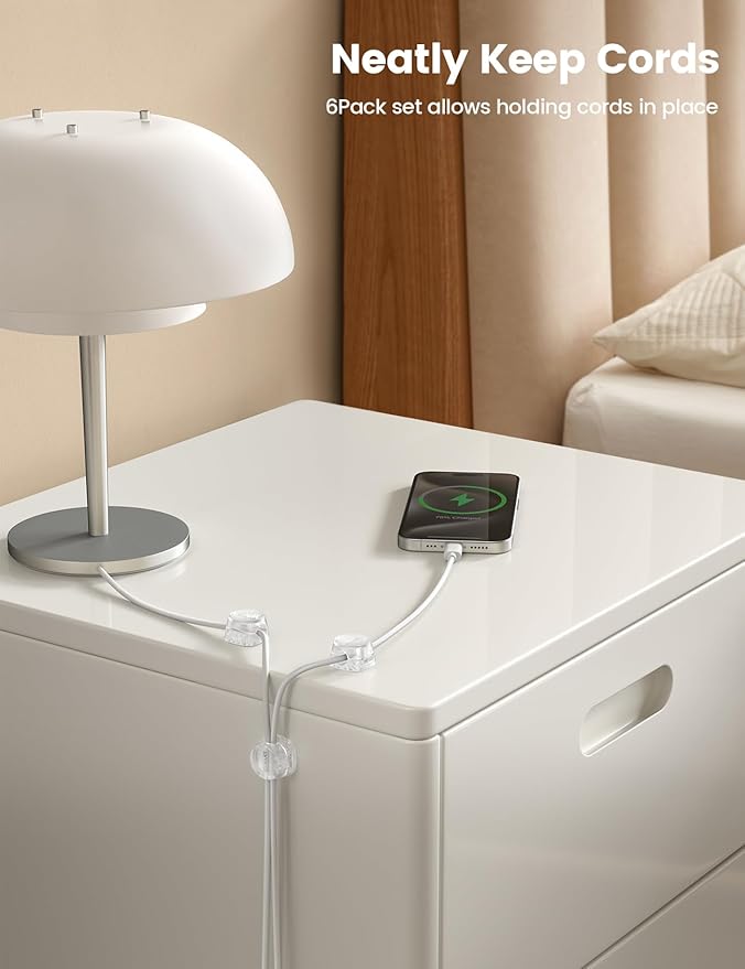 6Pack Cord Organizer, Desk Accessories - Lamicall Clear Cable Management Clips, Home Workspace Organization Accessories, Nightstand Wire Keeper Desk Decor, Dorm Room Essentials Desktop Gadgets