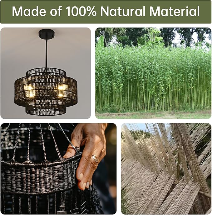 - [DURABILITY & ECO-FRIENDLY] Made from top-quality natural rattan, this Farmhouse Chandeliers Hanging Light Fixtures is designed for long-term use. It's fade-resistant, safe, eco-friendly and health-conscious. Plus, it comes with a thickened metal lamp body frame for added durability.