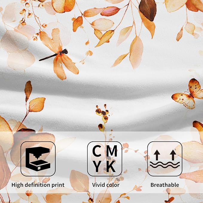 Orange Fall Hand Towels Set of 2 Eucalyptus Leaves Watercolor Butterfly Rustic Decorative Kitchen