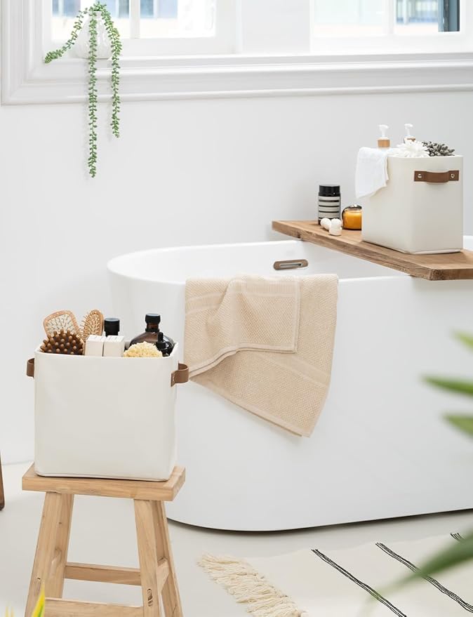 - Premium Materials: The storage basket is crafted from durable, thick fabric and features wide PU leather handles with rivet reinforcement, ensuring both strength and ease of movement to any desired location.