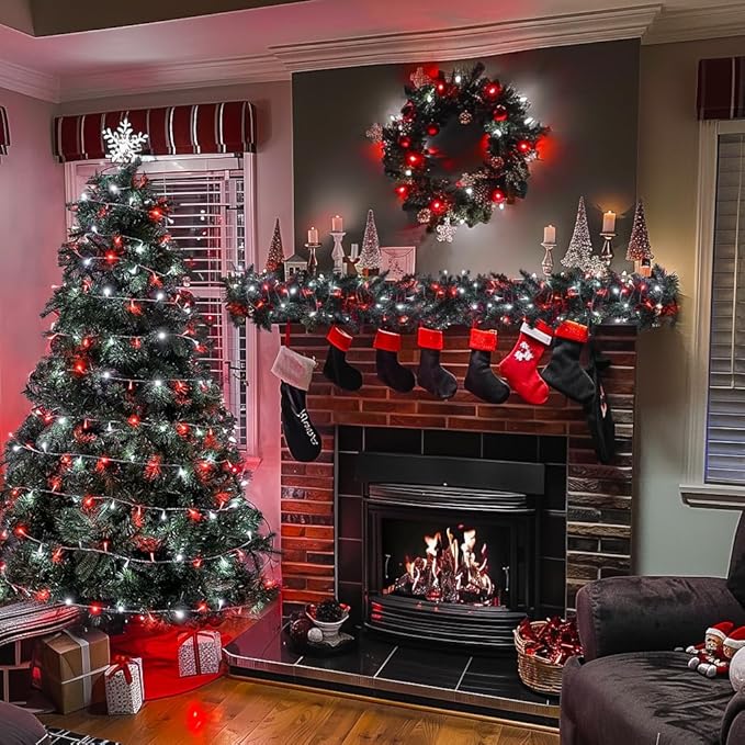 - 【Red and White Christmas Lights】Our Outdoor Christmas decor lights use higher brightness LED bulbs, while the plug power supply greatly improves the stability of the bulb brightness, making each of our LED bulbs shine 360 degrees, providing you with a constant crystal clear glow! These Plug in Twinkle lights are very warm, soft, and non-dazzling, adding a classic and charming glow to your Christmas decorations.
