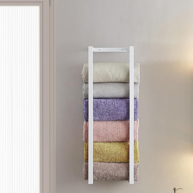 - Versatile Storage Solution - Whether you need to organize your towels,Such as bathrobes, washcloths, beach towels, pool towels, yoga towels, or fitness towels, This bathroom towel storage rack has got you covered. Its clever design allows you to place it anywhere in the bathroom, making it perfect for small spaces where every inch counts.