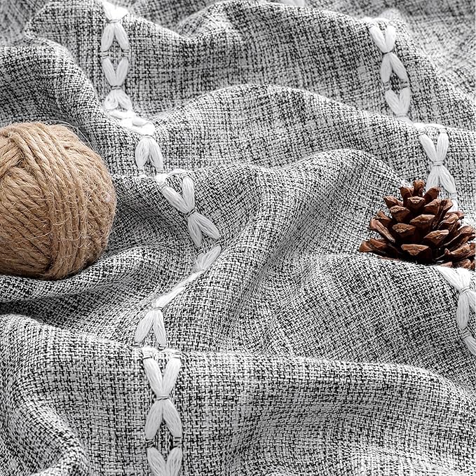 - Wrinkle Free & Ultra Thick Fabric - 310 GSM, 15% linen, 85% polyester creates farmhouse like effect for this dark grey shower curtain, so that it could keep in place. The quality curtain is elegant and soft, which can deliver a country-like bathroom environment.