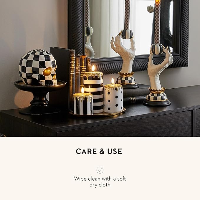 - ELEGANT RESIN DECOR: Our Courtly Check Halloween table decor is the perfect addition to any spooky display. It features a hand-painted pattern of black-and-white color-dragged checks with gold accents for a touch of style.