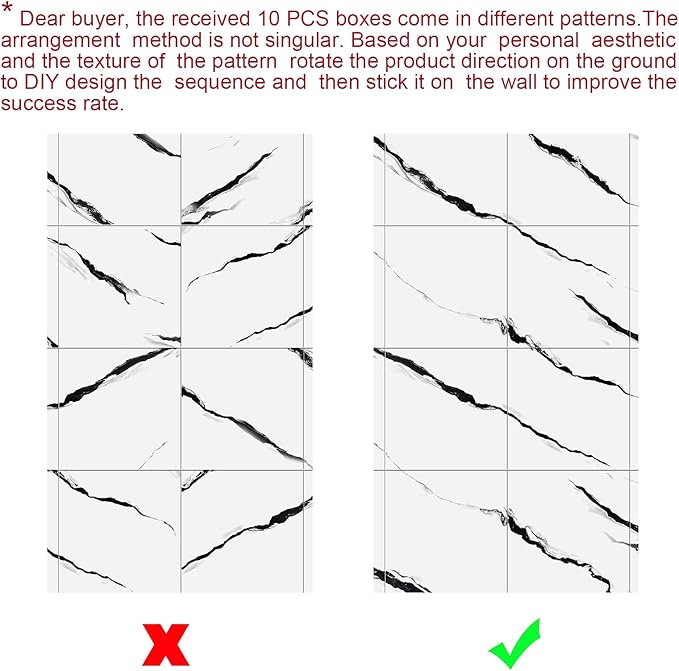 - 【Sophisticated Marble Design】:Transform your space with these peel and stick wall tiles featuring a sophisticated marble-inspired design (not real marble tiles). Perfect for enhancing washroom walls, kitchen backsplashes, or accent walls, these tiles deliver a high-end look without the high cost.(Not suitable for use on floors and in high humidity shower rooms.)