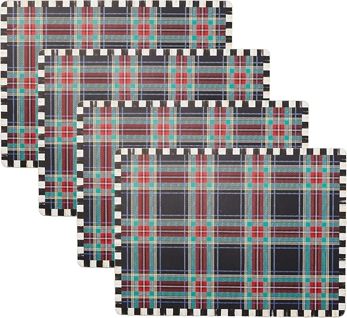 MACKENZIE-CHILDS Set of 4 Cork-Back Placemats, Hard-Finish Table Mats, Tartan Black