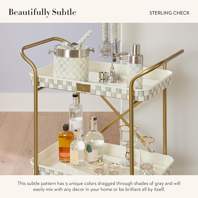 - ELEGANT SERVING ESSENTIAL: The Sterling Check bar ice bucket features a stainless-steel bucket and a clear enamel coating. It is decorated with subtle gray-and-white color-dragged checks and is pretty enough to display on your home bar or countertop.