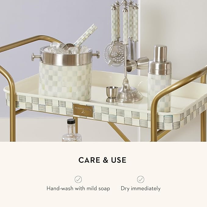 MACKENZIE-CHILDS 3260 Ice Bucket, Decorative Stainless-Steel Bucket and Ice-Cube Bin, Gray-and-White Sterling Check