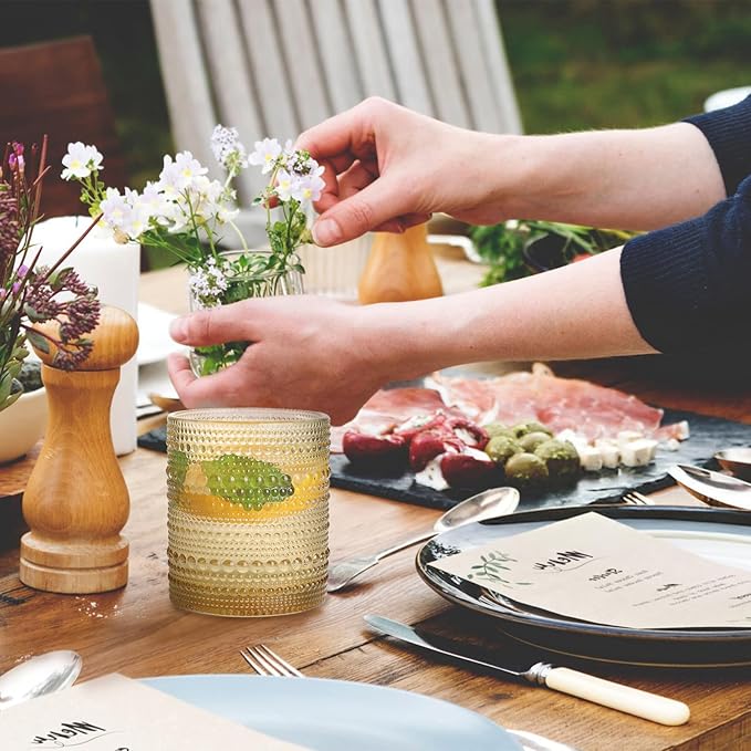 - Chic Textured Design: This glass features a stylish pattern of raised dots, offering a chic and modern look. The light hue adds a refreshing touch, making it perfect for any occasion, from casual meals to elegant gatherings.