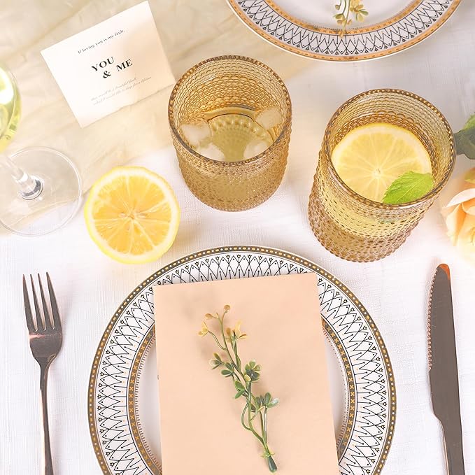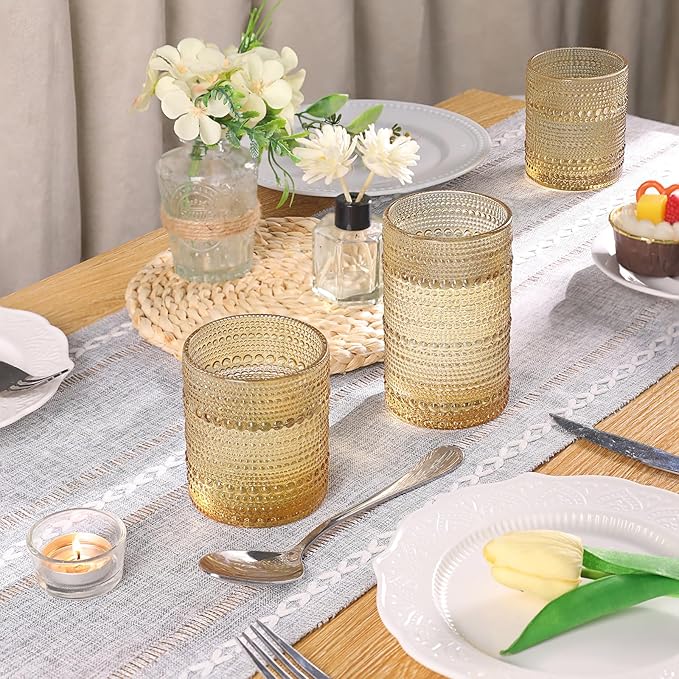 Amber Drinking Glasses Set of 4, 10 oz Hobnail Drinking Glasses - Amber Vintage Glassware for Beer, Cocktail, Soda, Juice, Coffee and Various Mixed Drinks