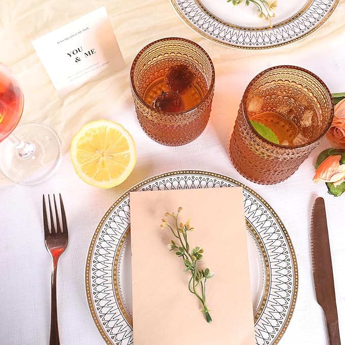 Tarracotta Hobnail Glasses Drinking Set of 4, 12 oz Cocktail Glasses, Tarracotta Vintage Glassware for Beer, Cocktail, Soda, Juice, Coffee and Various Mixed Drinks