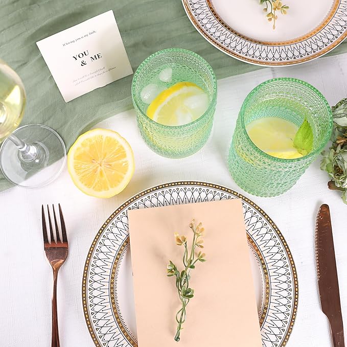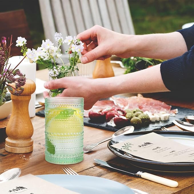 - Chic Textured Design: This glass features a stylish pattern of raised dots, offering a chic and modern look. The light hue adds a refreshing touch, making it perfect for any occasion, from casual meals to elegant gatherings.