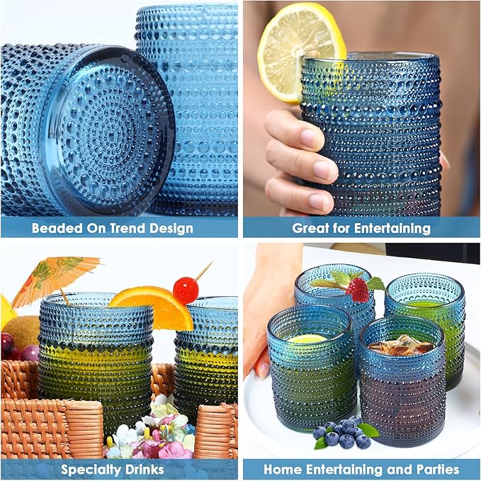 - VINTAGE DESIGN: The romantic blue color and unique embossed pattern provides a comfortable grip, making each glass a beautiful addition to daily use or special events