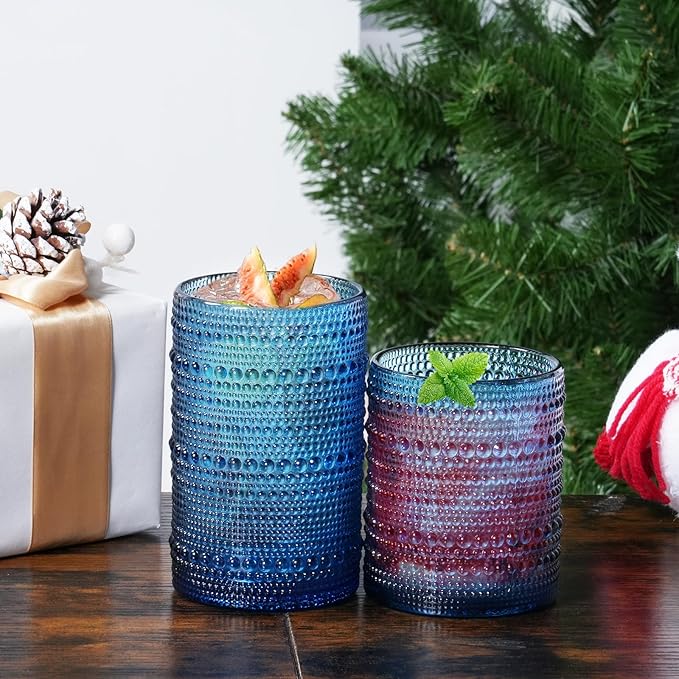 - VINTAGE DESIGN: The romantic blue color and unique embossed pattern provides a comfortable grip, making each glass a beautiful addition to daily use or special events.