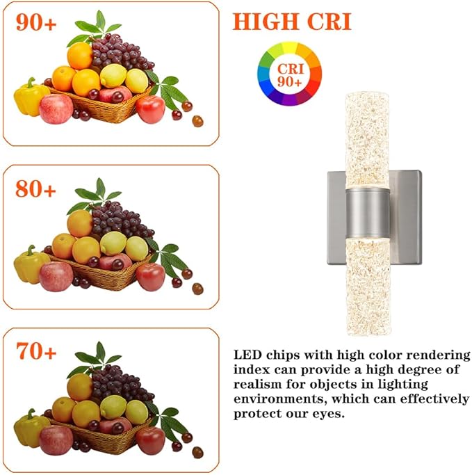 - Perfect Bathroom Vanity Lighting: Designed specifically for mirrors, these sconces provide ideal illumination.The exclusive molded crystal shade with water pattern beautifully diffuses light, decor your bathroom