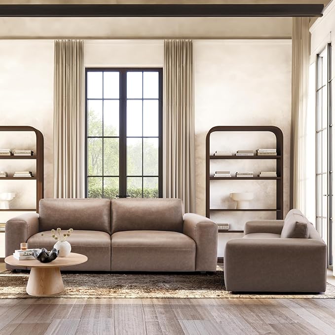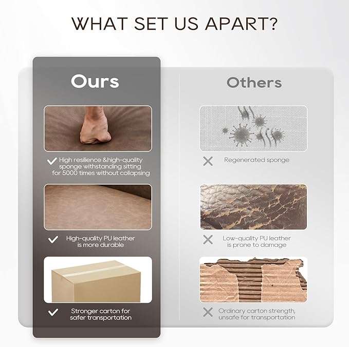- ⏩PREMIUM PU Leather Material-Our leather sofa couch adopts premium top grade PU leather material, which is smooth, skin-friendly and adds a touch of luxury to this sofa. Compared with a fabric surface, it is also much easier to take care of. Once stained, just wipe it with a clean damp cloth. A piece of quality leather furniture will age and grow with you for years to come
