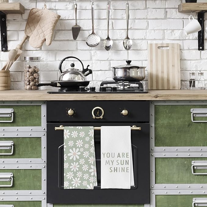 Boho Dish Towels You Are My Sunshine Waffle Weave Kitchen Towels Gifts for Girls Green