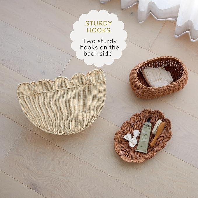- CREATE A NATURAL OASIS - Elevate your nursery with Bebe Bask’s scalloped home decor. The exquisite range of scallop decor in woven rattan, from changing baskets to diaper caddy organizers, comes together to form a seamless and stylish environment, marrying functionality with sophistication