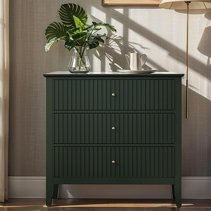 - Enhanced Safety and Stability: The dual anti-slip design of our wide green fluted 3 drawer dresser prevents drawers from accidentally slipping out, complemented by anti-tipping straps for added stability. A reinforced bottom plate and damping design enhance overall stability and load-bearing capacity, making it secure for daily use.