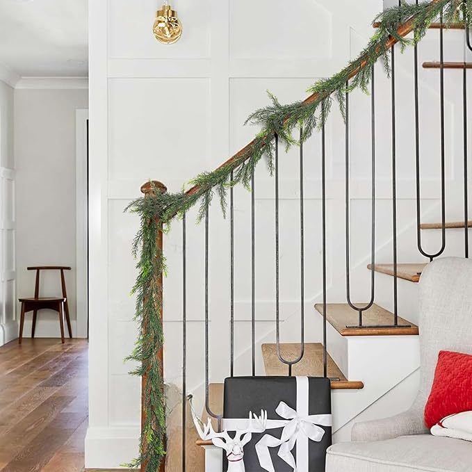 - Enhance Your Christmas Mantelpiece: Elevate your mantle display with our stunning Christmas cedar garland. Measuring 5.9ft/180cm, it's the perfect size to drape gracefully across your fireplace, adding a touch of elegance and festivity to your home's heart.