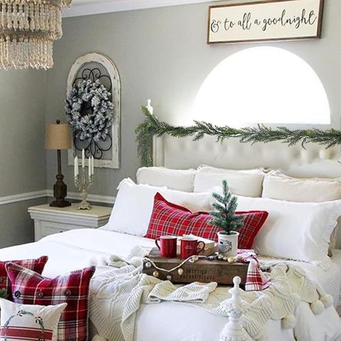 - Enhance Your Christmas Mantelpiece: Elevate your mantle display with our stunning Christmas cedar garland. Measuring 5.9ft/180cm, it's the perfect size to drape gracefully across your fireplace, adding a touch of elegance and festivity to your home's heart.