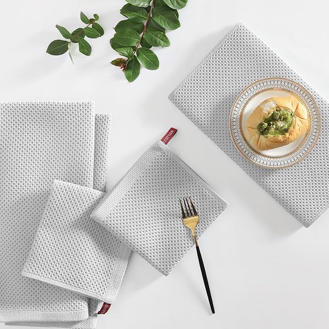 Homaxy 100% Cotton Kitchen Towels and Dishcloths Set, 12 x 12 Inches and 13 x 28 Inches, Set of 12 Bulk Kitchen Towels Set, Ultra Soft Absorbent Dish Cloths for Washing Dishes, Light Gray